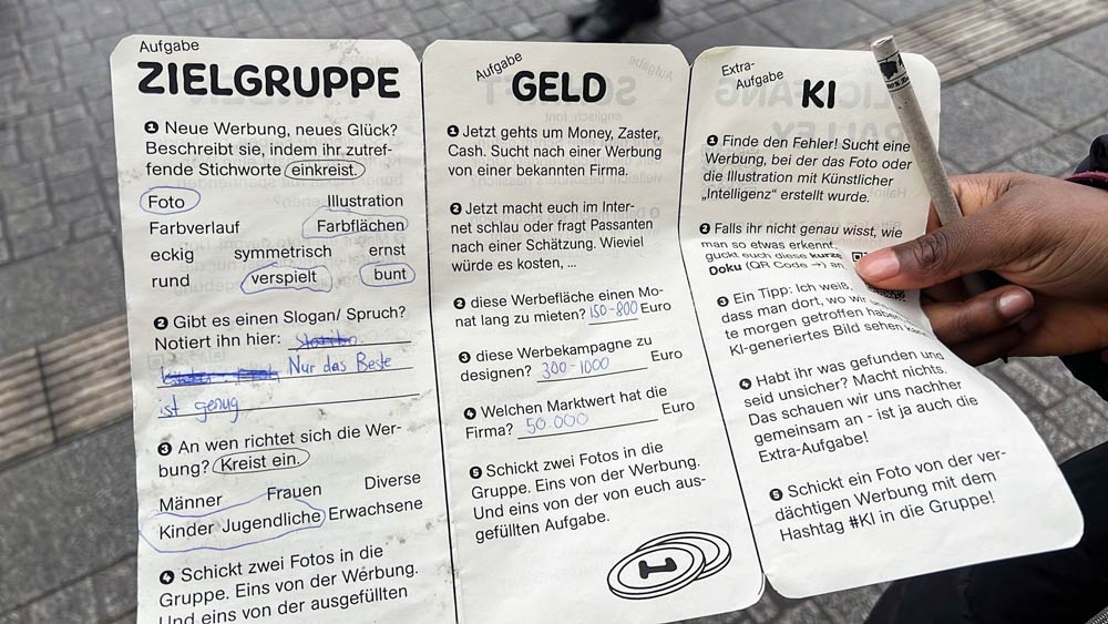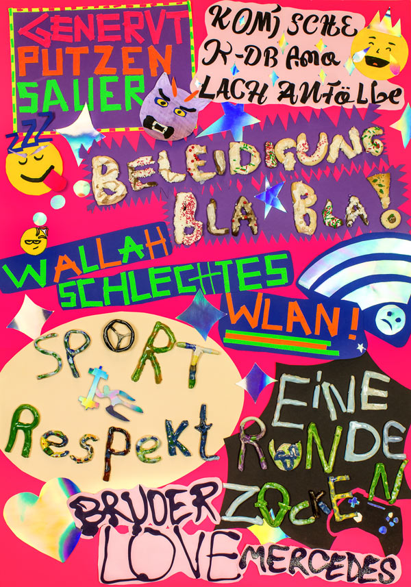 Im Projekt BLICKFANG des QUARTIER Bremen gGmbH habe ich zusammen mit der supertollen Klasse 8f der Wilhelm-Kaisen-Oberschule ein Plakat gestaltet. An vier Projekttagen haben wir uns gemeinsam dem Thema Werbung genähert. Zuerst haben wir in einer Rallye durch die Bremer Innenstadt Gestaltung und Marketingstrategien von Läden und großen Unternehmen beleuchtet. Danach entstanden in einer kreativen Schreibwerkstatt - nach dem Prinzip Kühlschrankpoesie - Slogans, Symbole und Emojis, die die Themen der Jugendlichen auf den Punkt bringen.